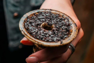 - Наполнив чашу, раскалите уголь и поставьте в ее середину. Чтобы растянуть процесс кальянокурения, расположите по кругу небольшие угольки.
