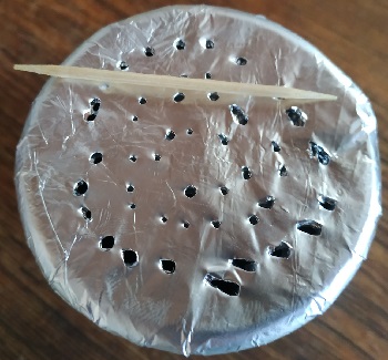 - Закрепите фольгу, закрыв ею плотно чашку прибора, и сделайте в ней несколько небольших отверстий.