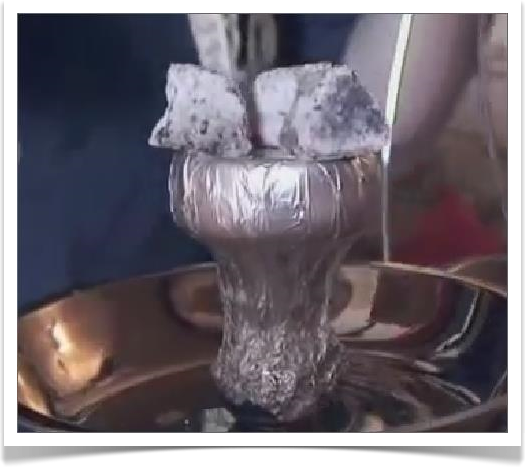 - Готовые угли поместите на фольгу или калауд, и выждите 7 минут.