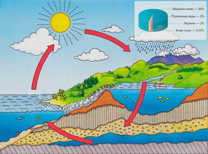 В природе простой состав воды практически не встретить, в основном в ней многих примесей в виде минеральных веществ. Водная среда включает все реки, озера, моря, океаны планеты. 4 земных океана вместе создают единую систему, омывающую каждый материк. Водой покрыто 70% всей Земли.