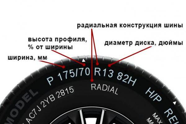 В маркировке шин есть обязательные и необязательные обозначения. Так, на каждой покрышке будет указана компания-производитель, марка самой резины и типоразмер шин. Обозначение из трех цифр на покрышках обозначает размерность диска в дюймах, ширину резины и высоту профиля. Цифры расположены на внешней стороне.