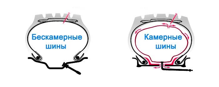 - При проколе бескамерные шины спускаются в разы медленнее.