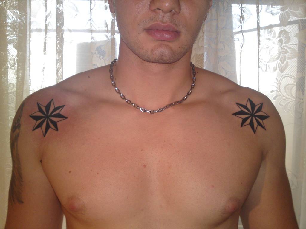 Тату звезда, расположенная на плече означает, что с ее помощью человек хочет показать свою самодостаточность, везение. Обычно на этом участке тела такое тату изображают личности властолюбивые, наделенные лидерскими качествами.