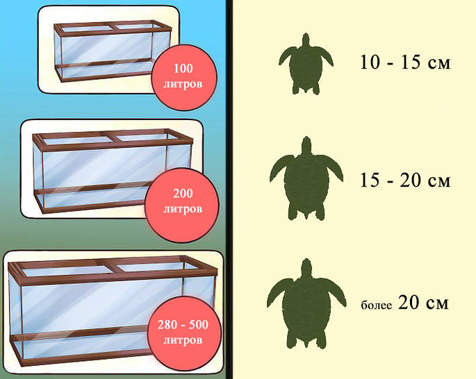 Аквариум нужен большой. Ошибочно считать, что чем он меньше, тем меньше будет расти черепашка. На размер питомца это никак не влияет, но может отрицательно сказаться на здоровье любимицы. Объем аквариума должен составлять от 100 до 150 литров.
