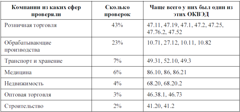 Мы собрали ОКВЭДы организаций, к которым приходили с проверкой новых требований.