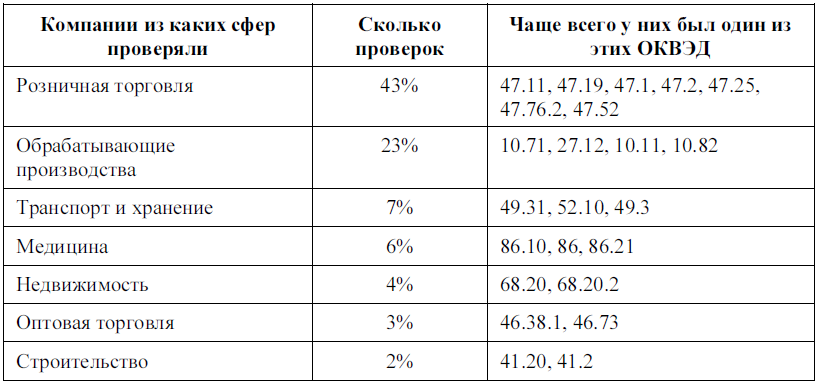 Мы собрали ОКВЭДы организаций, к которым приходили с проверкой новых требований.
