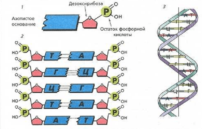 Чтобы образовалась цепь ДНК из нуклеотидов, необходима реакция конденсации. В процессе этой реакции углерод остатка сахара одного нуклеотида и остаток фосфорной кислоты другого вступают в сложную связь, образуя неразветвленные полинуклеотидные цепочки. Структура ДНК состоит из ряда таких нуклеотидных цепей. Между нуклеотидами образуются прочные фосфодиэфирные мостики, уменьшающие риск появления проблем в структуре нуклеотидов.