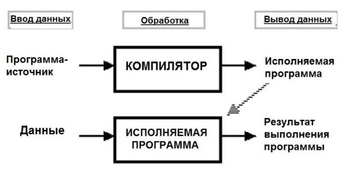 Компьютер выполняет обработку команд исполняемой программы при помощи процессора, поочерёдно выполняющем процедуры, представленные в двоичных кодах. То есть необходимо сначала преобразовать, к примеру, выражение «Х=5», в кодовые последовательности, понятные процессору. Эту задачу выполняет процесс компиляции при помощи специальных программных приложений, именуемых компиляторами. Компилятор получает, написанную программистом на выбранном им языке, программу, выполняет её подробный анализ и разборку всех участков программы. И затем уже, на основании анализа, формирует программу в машинных кодах процессора.