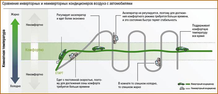 | Инвертор | Плавные температуры, меньше риска простудиться, более тихая работа |