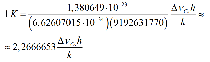 Точное выражение для кельвина в терминах определяющих констант k , h и ΔvCs: