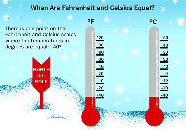 Первые две единицы используют разные методы измерения. По Цельсию вода замерзает при 0 градусов, а по Фаренгейту — при 32 градусах. И самое забавное, что обе шкалы сходятся и находят одну и ту же ртутную точку при температуре -40 градусов.