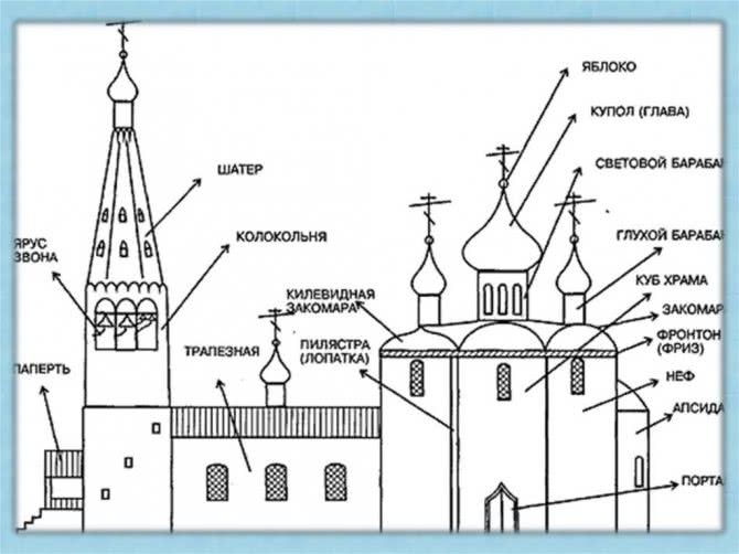 Храм — это культовое здание, в котором проводятся службы, богослужения, религиозные обряды. В этих священных сооружениях обязательно должно быть три или больше куполов, при чем три главных символизируют святую троицу. Если к основной части достраивается дополнительная, то на ней так же должен быть купол. Новая часть может иметь отличное от основного храма название.
