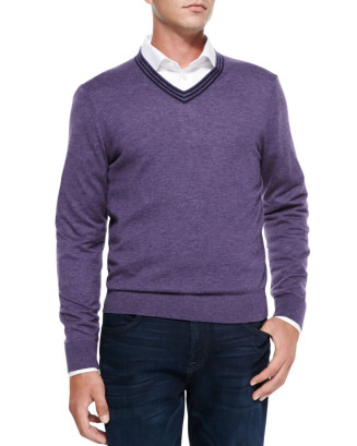 Пуловер зачастую принимают за одну из вариаций свитера, и это действительно так. Представляет собой он тонкий свитер мелкой вязки, который отличается от своей классической вариации отсутствием воротника и наличием V-образного силуэта. Еще одной отличительной чертой пуловера является его приталенный силуэт.