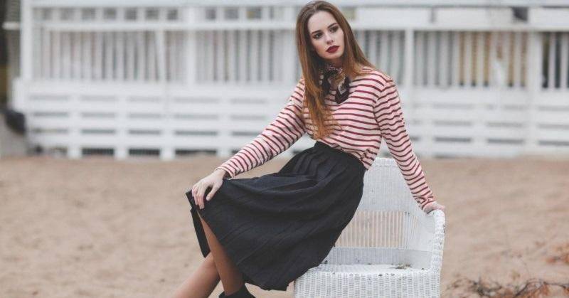 Для повседневного использования к этому верху идеально подходит элегантная плиссированная юбка. Она достигает колена, середины теленка и лодыжки. Продукт может быть пастельных или ярких цветов. Главное, чтобы его палитра соответствовала цветам верха. В большинстве случаев плиссированные юбки шьются из воздушных тканей и прекрасно сочетаются с нарочито скучным верхом. Для повседневного образа рекомендуется выбирать удобную обувь, независимо от того, есть ли у нее фиксированный каблук или нет. Удобная обувь, обувь на танкетке, современные кроссовки, мокасины и балерины.