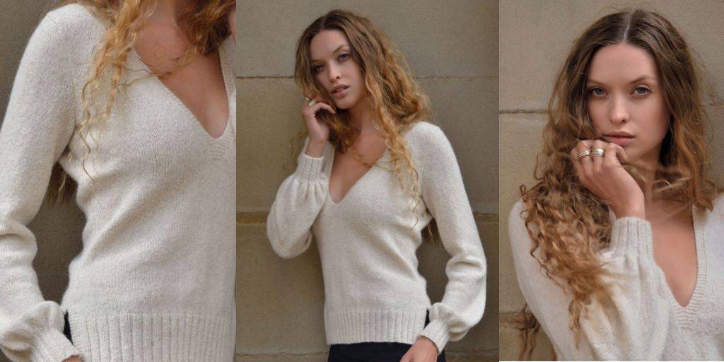 Пуловер отличается треугольным вырезом и классическим оформлением. У него не может быть ярких надписей или узоров, как у свитшотов. Часто у пуловера отсутствуют резинки на манжетах и на нижней планке. Вяжут изделие из теплой мягкой пряжи, такой как: мохер, кашемир или ангорка.