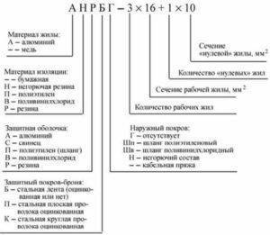 Материал, используемый для токопроводящей жилы, обозначается буквой «А» вначале маркировки, если это алюминий, и остается без обозначения, если это медь.