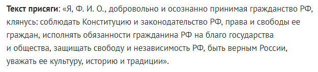 Сейчас при получении подданства этот текст необходимо читать всем вне зависимости от оснований его приобретения. Исключение составляет отдельная группа лиц – им для вступления присяга не нужна: