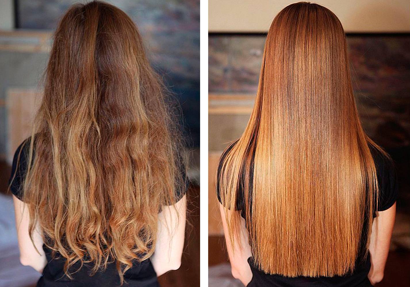 - Здоровые, прямые, шелковистые, послушные локоны по всей длине, легко поддающиеся укладке.