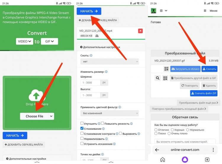 - По завершении конвертации останется скачать гифку, нажав на соответствующую кнопку.