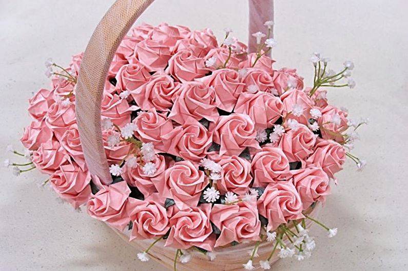 Розы из бумаги, выполненные своими руками – универсальное украшение. Их можно использовать в качестве самостоятельного элемента декора, сложив, к примеру, в корзинку или поставив в вазу, либо преобразить с их помощью выбранный предмет. Мы подготовили несколько идей, которые помогут задекорировать дом к празднику или создать уникальные вещи для каждодневного использования.
