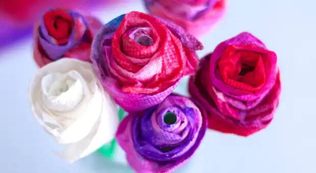 Эти розочки такие красивые, такие живые, что с первого взгляда и не скажешь, что они сделаны из туалетной бумаги. И поскольку их изготовление не требует практически никаких затрат, ваши дети могут сделать целый букет, чтобы подарить его кому-то особенному.