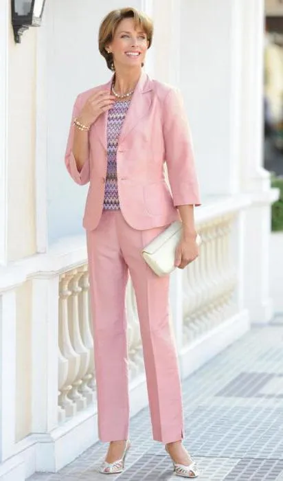 - Пиджак сделает деловой образ законченным. Он должен быть подобран в тон к брюкам. К прямым моделям подбирают приталенный пиджак, а к свободным – классический с запахом.