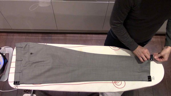 - Когда верхняя штанина будет готова, ее аккуратно отводят в сторону, и выполняется проглаживание второй брючины.
