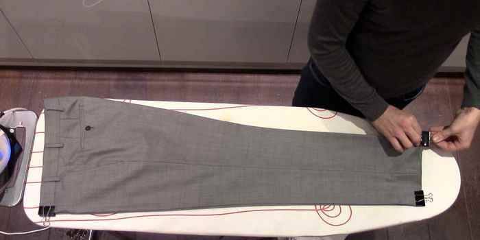 - так вставьте вещь, прогладьте штаны по всей длине так, чтобы внутренние швы были друг над другом;
