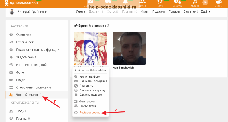 Как разблокировать человека в одноклассниках из черного списка