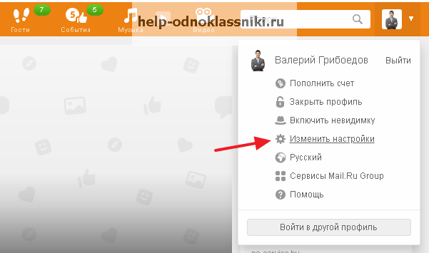 Чтобы перейти в “Черный список” в Одноклассниках, нажмите на пункт “Настройки”.