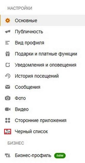 Где находится “Черный список” в Одноклассниках