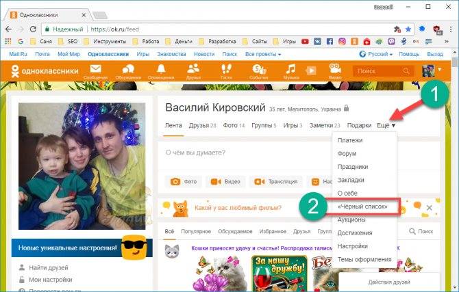 Как занести в “Черный список” в Одноклассниках