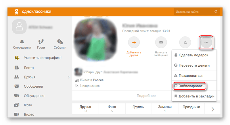 Чтобы добавить в “Черный список” в Одноклассниках с веб-версии социальной сети, необходимо: