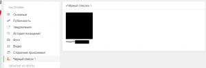 - Среди настроек профиля практически в самом начале вы увидите пункт “Черный список” — нажмите на него, и вы окажетесь в соответствующем разделе, где будет отображаться список заблокированных пользователей.