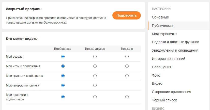 Параметры публичности, появившиеся в социальной сети «Одноклассники», ранее уже разбирались в блоге. Например, инструкция, посвященная «закрытому профилю», достаточно подробно рассматривает систему защиты конфиденциальной информации (заметки, публикации и личные сведения) от посторонних.