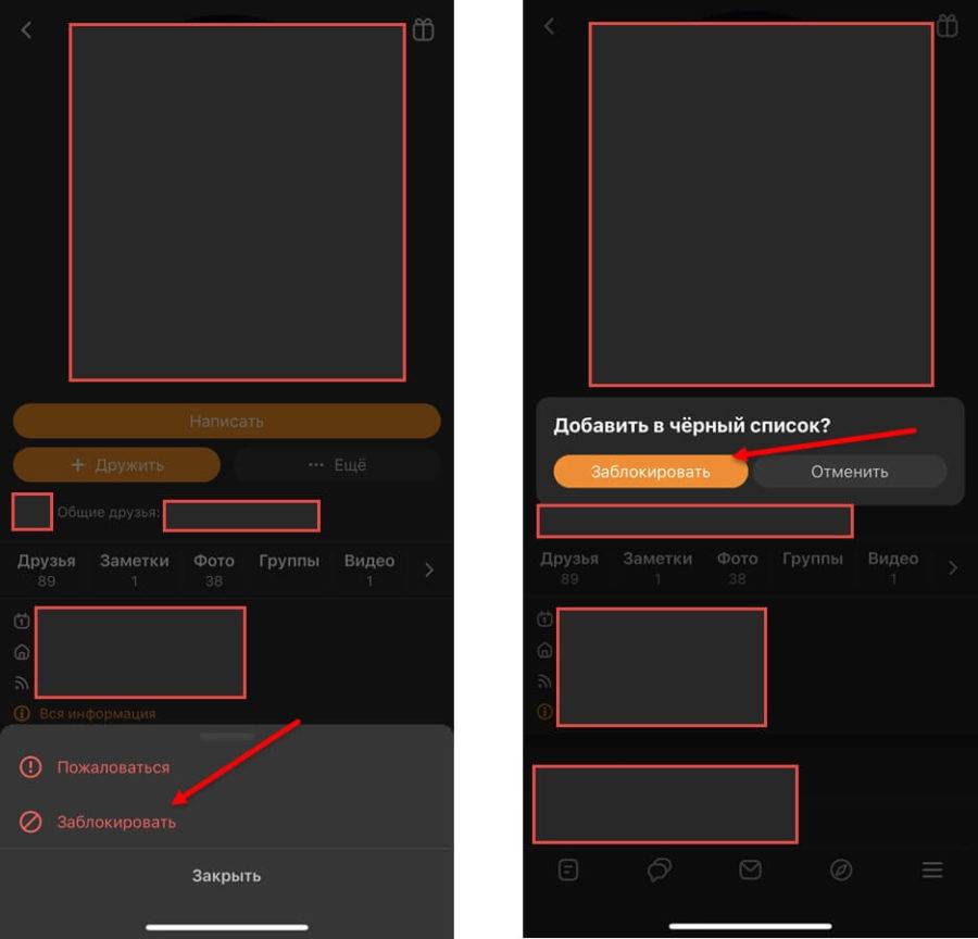 Как заблокировать пользователя ОК через черный список