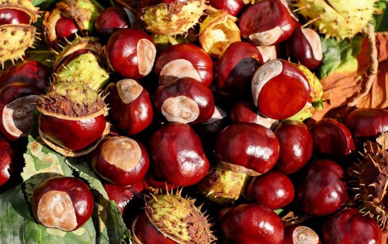 Для начала нужно вовремя и правильно собрать кору, листья, цветы и плоды конского каштана.