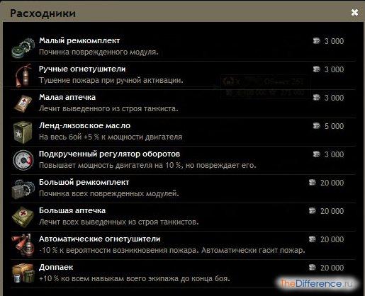 Конечно, никто не мешает вам возить стандартный набор из малого ремкомплекта и аптечки, а также огнетушителя. Арты со слабой динамикой разгона могут установить в один из слотов расходники, улучшающие динамику: «качественное масло», «регулятор оборотов движка», «высокооктановый бензин». Мажоры, предпочитающие воевать на САУ, могут оснастить свои арты «съедобными» расходниками для экипажа, увеличивающими навыки и умения на 10% (онигири, кофе, шоколад и т.д.).