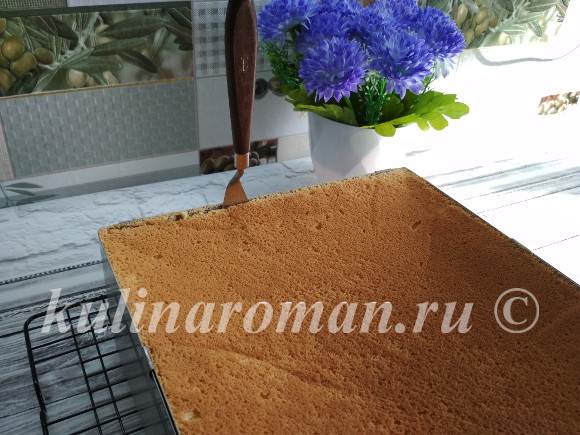 Затем снять форму, чтобы бисквит не прел и поставить на решетку до полного остывания.