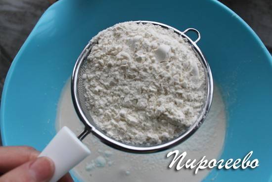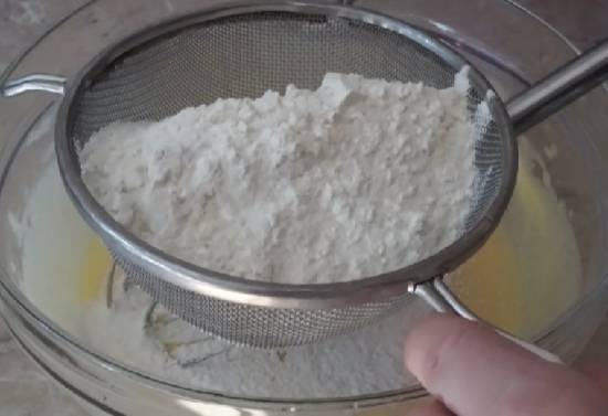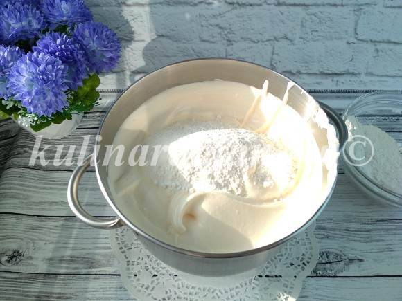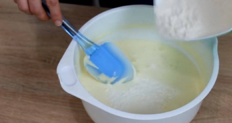 2. В яичную смесь ввести муку. Как было сказано выше: нужна нежность, надо максимально сохранить воздушность массы.