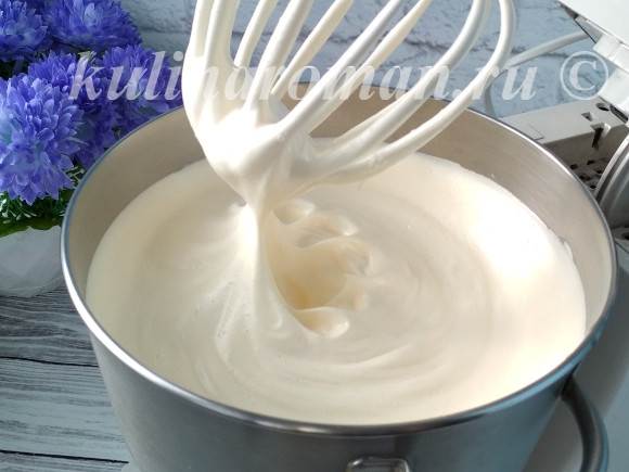 4. Взбитые белки с сахаром глянцевые на вид, прям как для меренги.