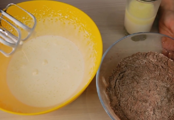 В яичную смесь ввести сухие ингредиенты в два этапа.