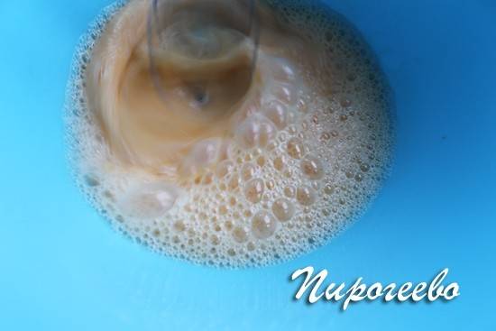 Разбиваем яйца во взбивальную чашу. Если у Вас нет взбивальной машины используйте обычную глубокую посуду и миксер. Взбиваем немного