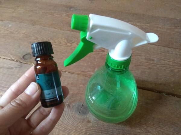 - Добавьте в воду эфирное масло (10-30 капель на стакан воды, т.е. достаточно концентрированно), добавьте столовую ложку спирта (водки) и обрызгайте этим раствором из пульверизатора все подозрительные места.