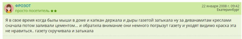 Еще рекомендуют проложить и затолкать перед тем, как заделать лазы, старые капроновые колготки. Вроде как мышиные зубы не могут их грызть, они вязнут у них на зубах и их это весьма раздражает.