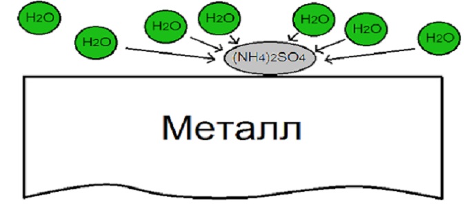 Влажная коррозия начинается при относительной влажности воздуха выше 70%. Этот тип коррозии стимулируется появлением слоя влаги на металле и распространен в климатических условиях практически всех регионов России. Толщина пленки от 10 до 1000 нм.