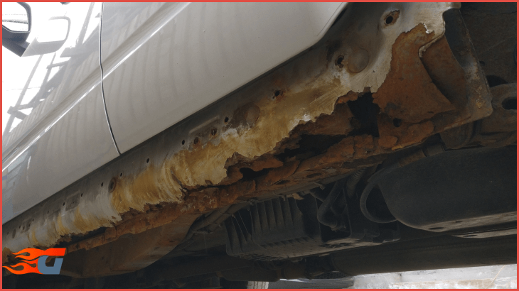 Пороги тоже ржавеют, так как они попадают под влияние грязи, летящего из-под колёс гравия, химических агрессивных веществ дорожных реагентов. Пороги защищают машину от деформаций, но сами постоянно подвергаются механическим воздействиям и повреждаются.