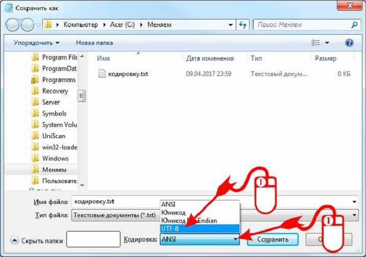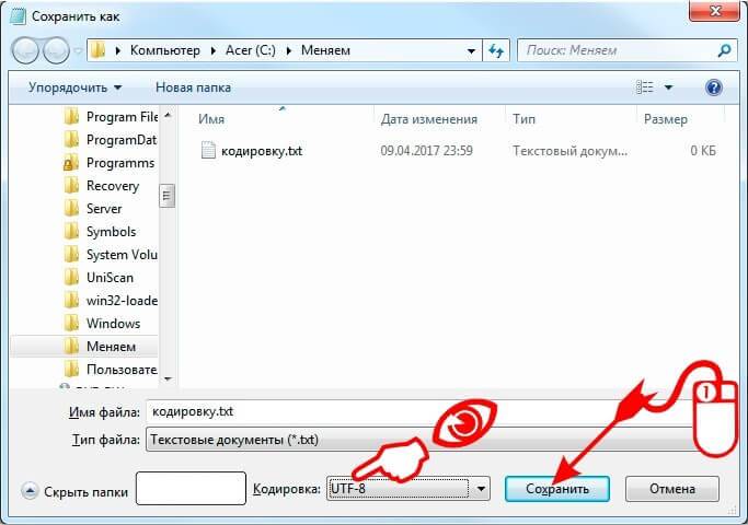 Смена кодировки текстового файла с помощью Блокнота в Windows