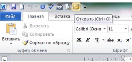 - комбинацией клавиш Ctrl+O;