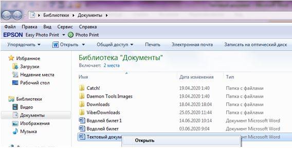 Чтобы открыть текстовый документ следует выбрать один из вариантов: